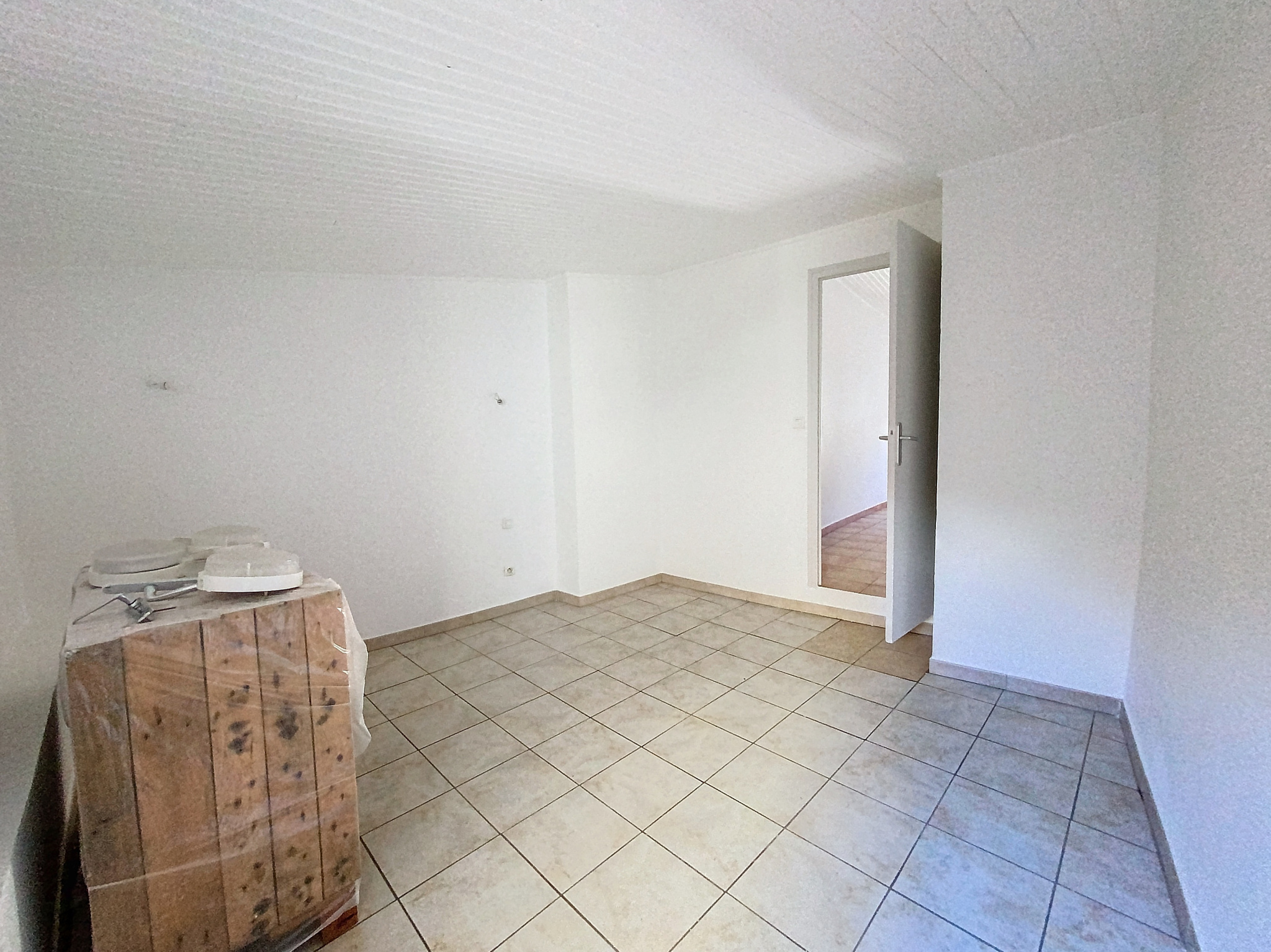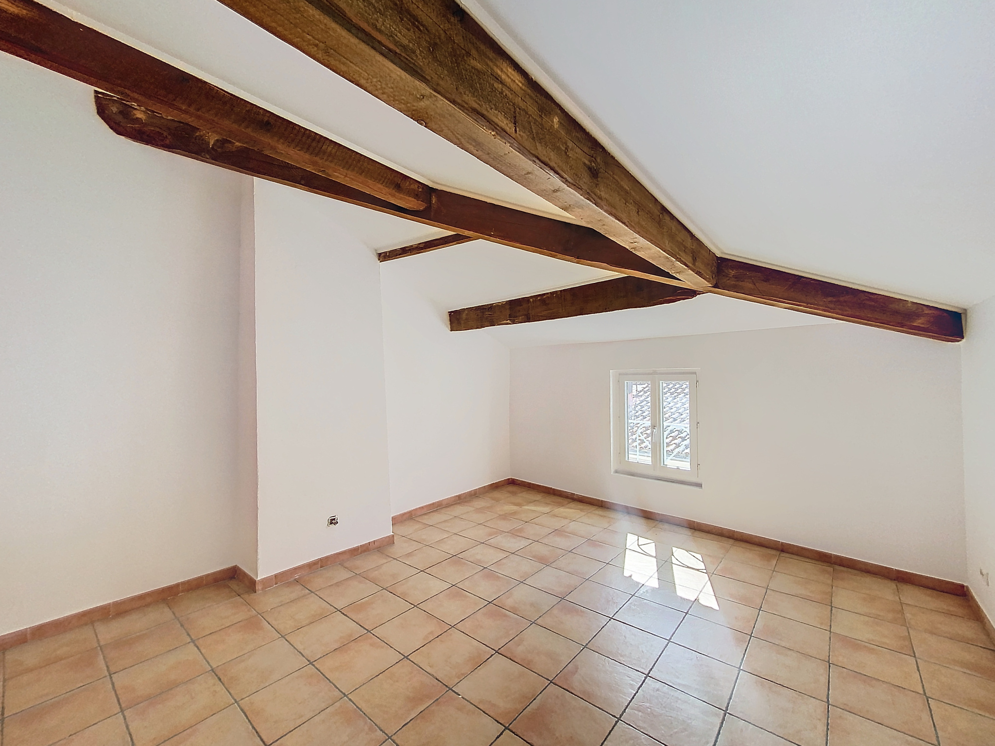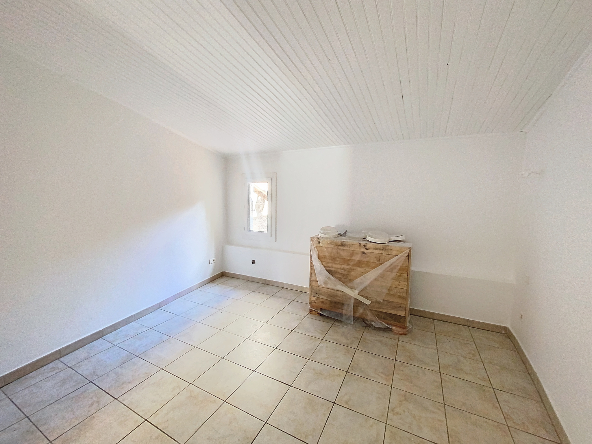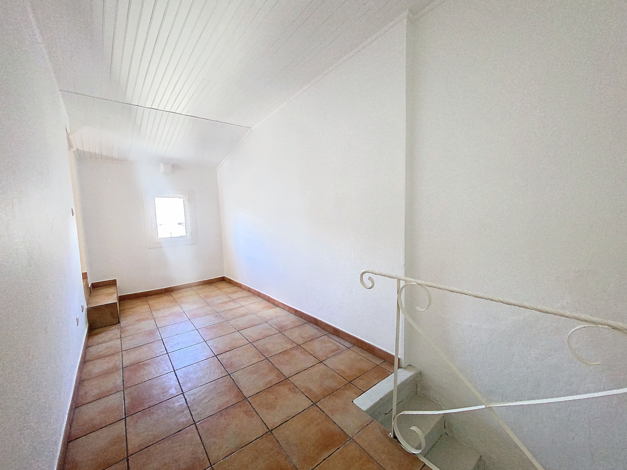 Premier étage : un grand dégagement mène à une vaste chambre pouvant facilement être aménagée en deux espaces distincts pour bureau ou une seconde chambre. Une salle d'eau avec WC est également présente à cet étage.