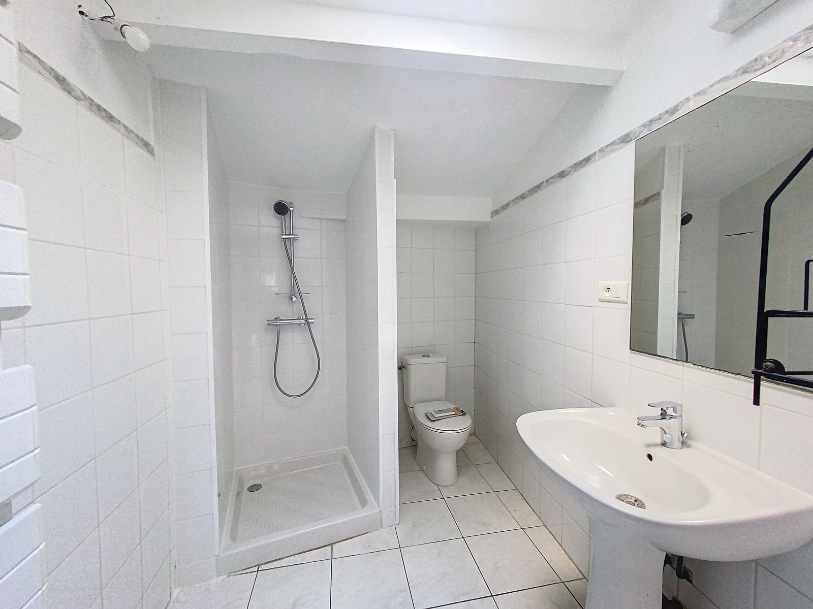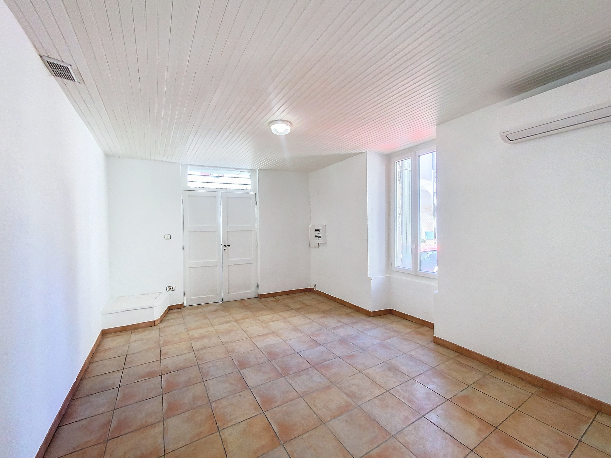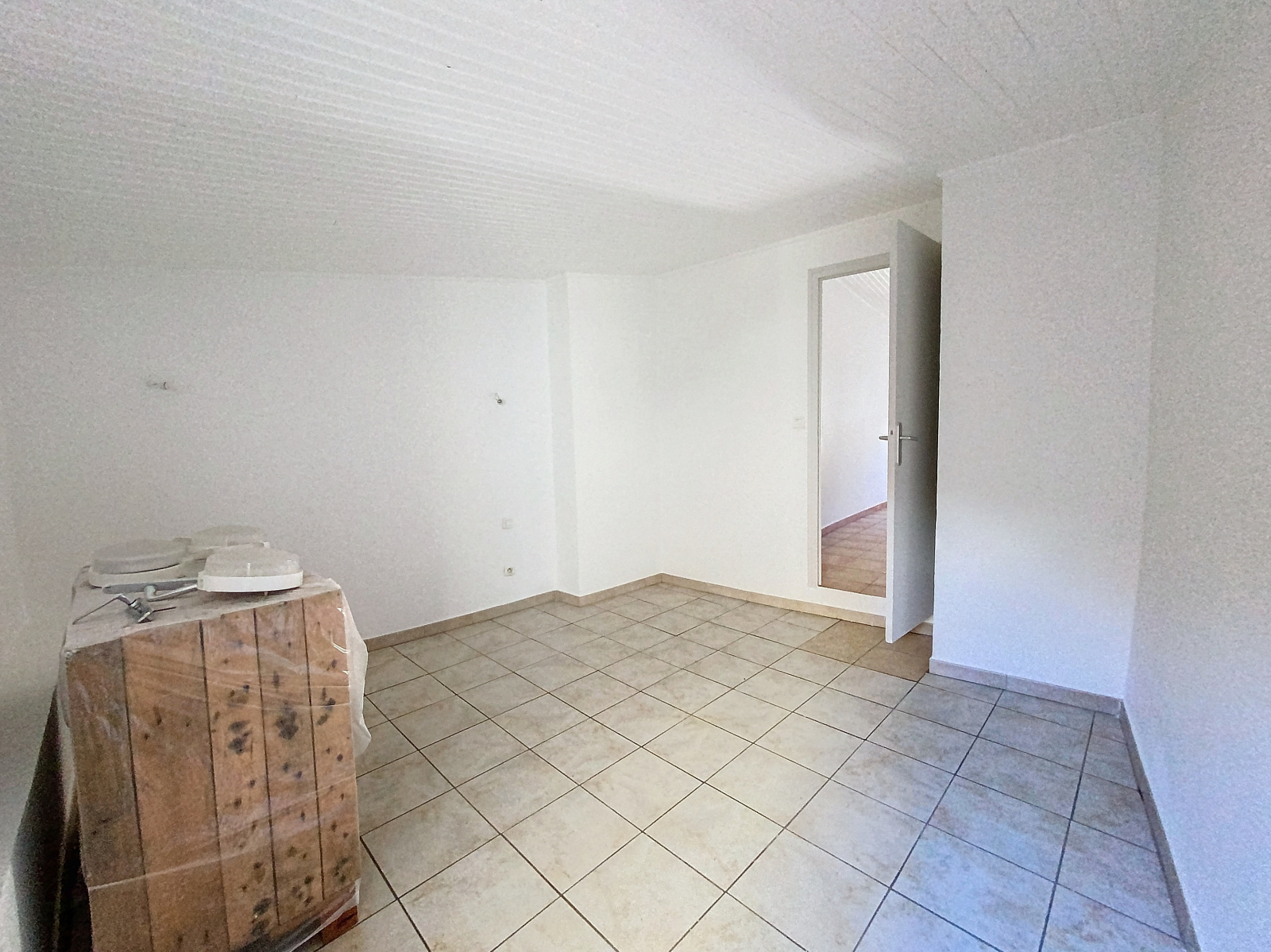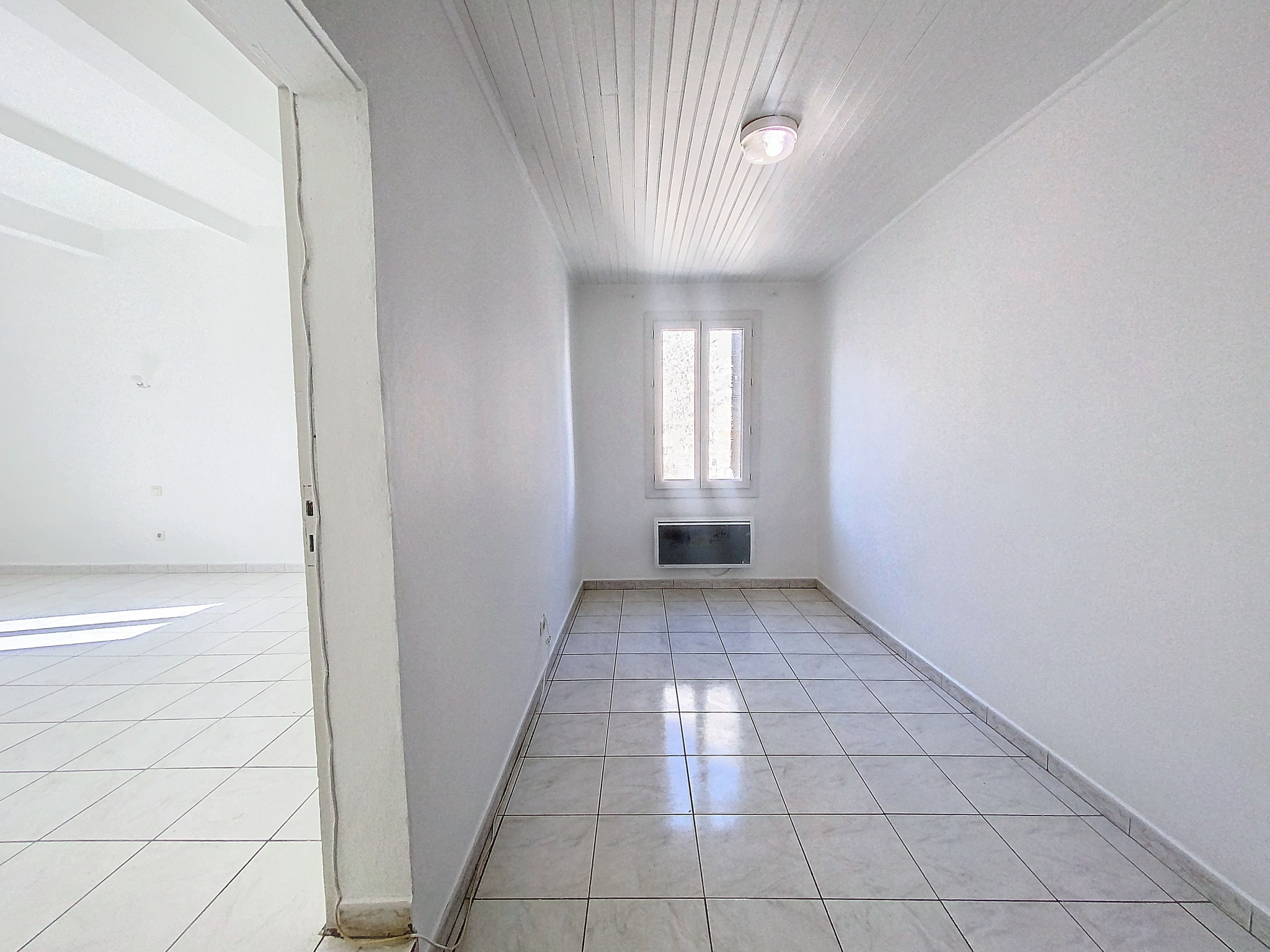Premier étage : un grand dégagement mène à une vaste chambre pouvant facilement être aménagée en deux espaces distincts pour bureau ou une seconde chambre. Une salle d'eau avec WC est également présente à cet étage.