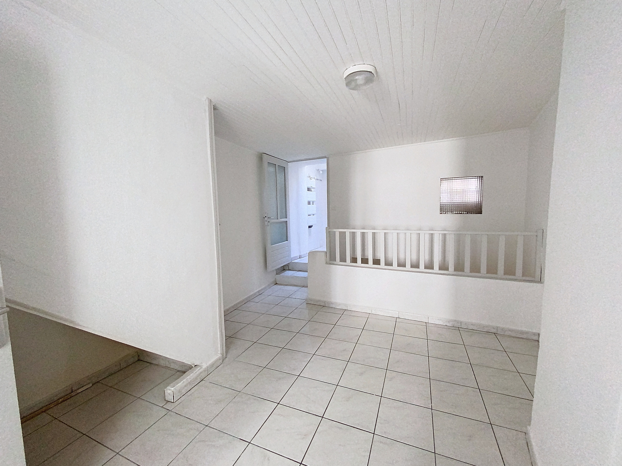 Premier étage : un grand dégagement mène à une vaste chambre pouvant facilement être aménagée en deux espaces distincts pour bureau ou une seconde chambre. Une salle d'eau avec WC est également présente à cet étage.