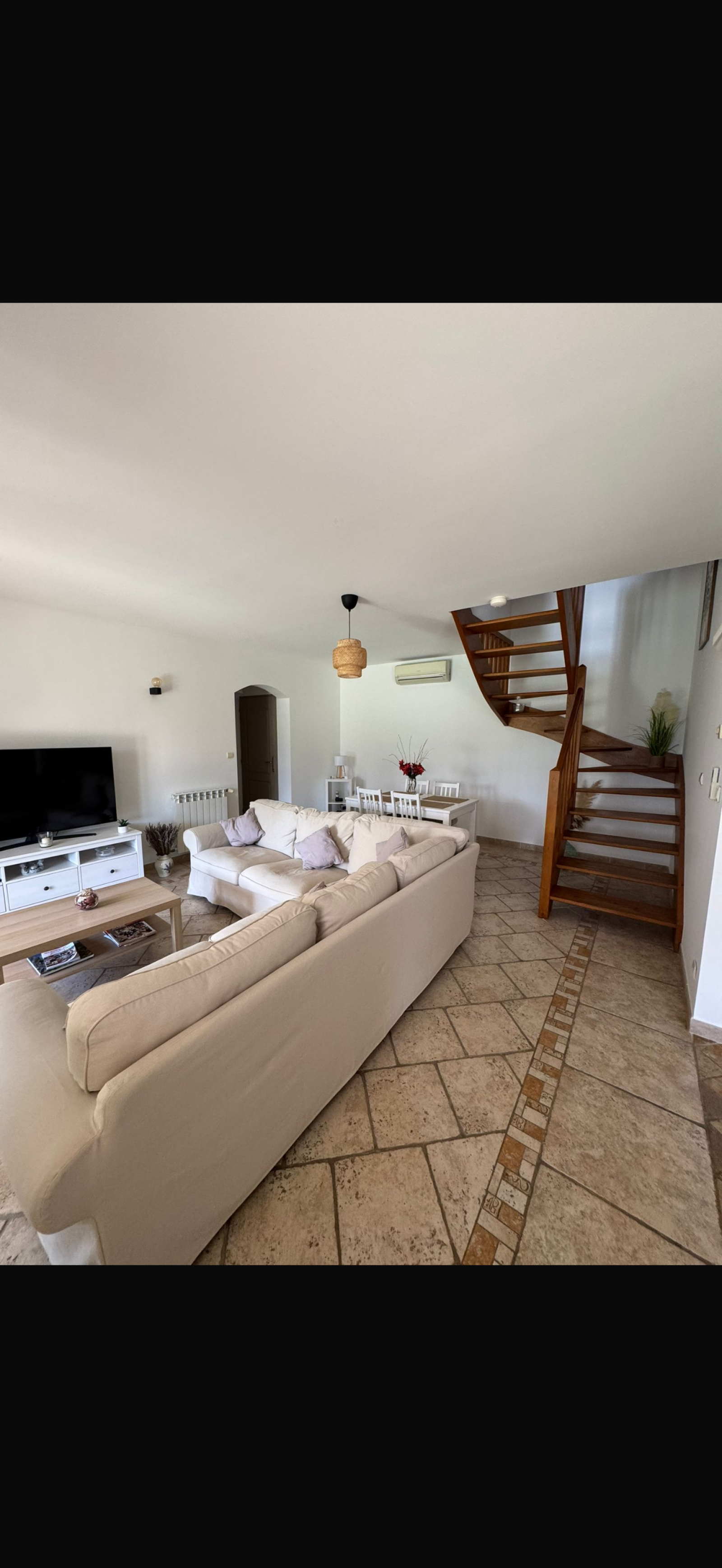 À l’étage, trois chambres aux beaux volumes ainsi qu’une seconde salle de bains complètent l’espace nuit.