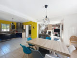 Dès l’entrée, on découvre une vaste pièce de vie lumineuse de plus de 50 m², idéale pour partager des moments conviviaux en famille ou entre amis.Le rez-de-chaussée accueille une suite parentale avec sa salle d’eau, ainsi qu’une autre chambre disposant de sa propre salle de bain.À l’étage, deux autres chambres en enfilade se partagent une salle de bain, offrant un espace nuit bien séparé pour les enfants ou les invités.À l’extérieur, un jardin arboré de 1 000 m², alimenté par un forage, entoure une belle piscine où profiter des beaux jours.Une dépendance climatisée complète l’ensemble : parfaite pour une activité libérale, un studio indépendant ou une salle de jeux selon vos besoins.Un garage fermé ajoute praticité et rangements, tandis que les panneaux solaires contribuent à réduire les dépenses énergétiques.