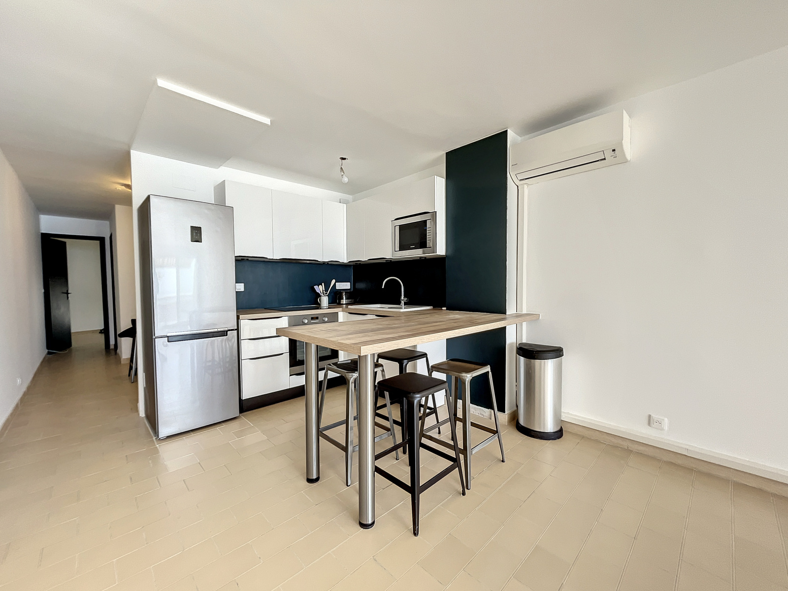 Côté équipements, cuisine américaine aménagée et équipée, double vitrage et climatisation.