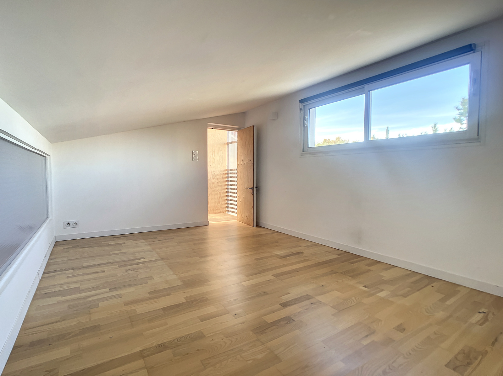 Sous les toits, une pièce pour chambre d'amis ou bureau.