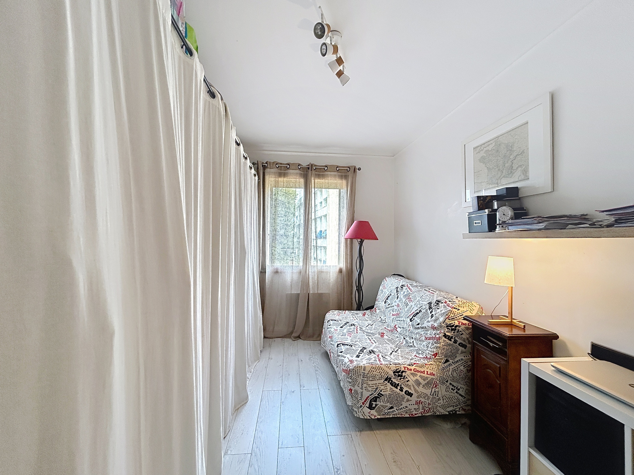 Entièrement rénové avec goût, cet appartement offre un cadre de vie agréable et lumineux grâce à sa vue dégagée et sa lumière. Il se compose d’un séjour spacieux, d’une cuisine moderne, de deux chambres confortables, d’une salle d’eau et de WC séparés.