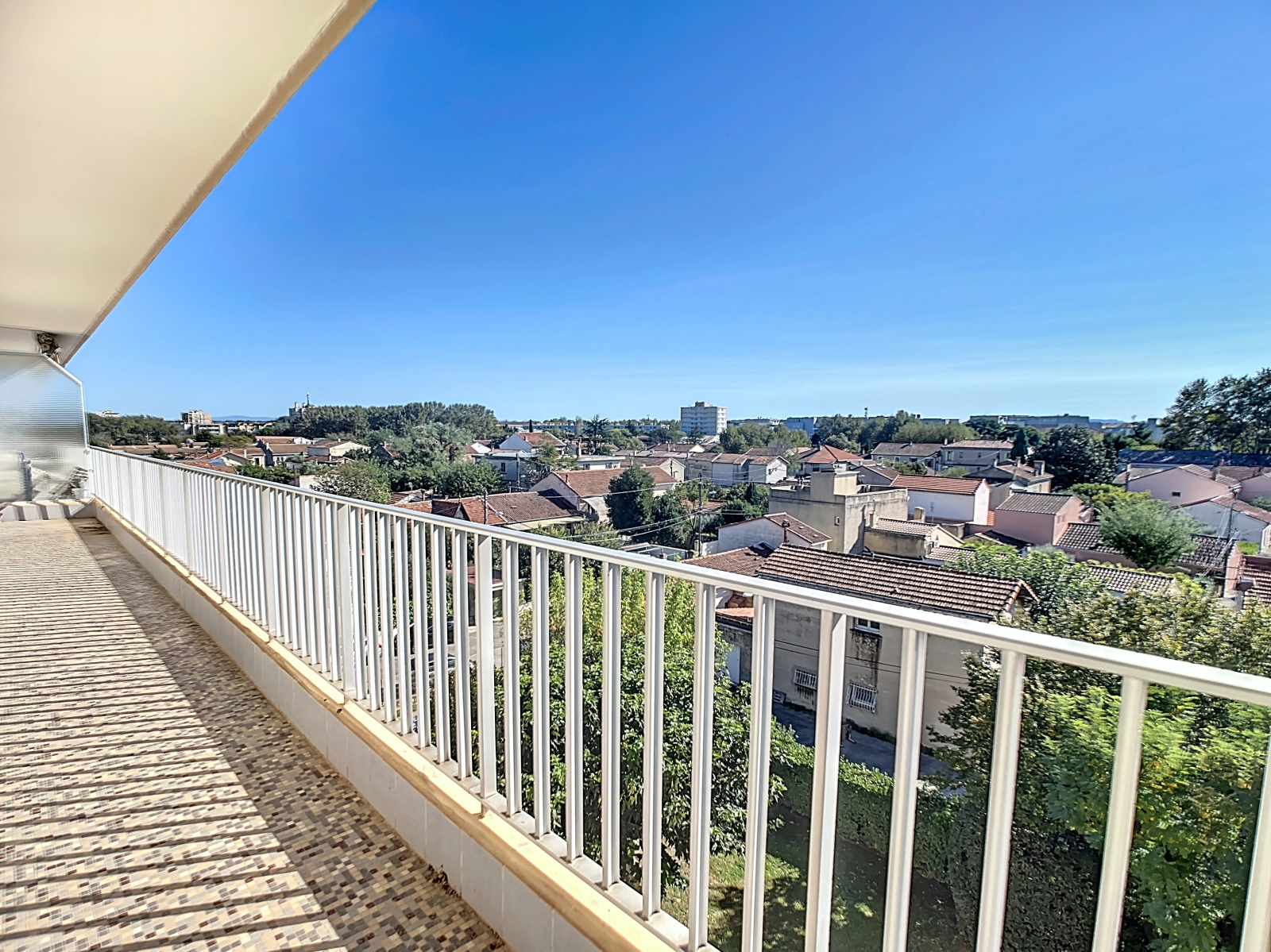 L'appartement que nous vous proposons est exposé sud. Chaque pièce ouvre sur la terrasse avec une belle vue dégagée.