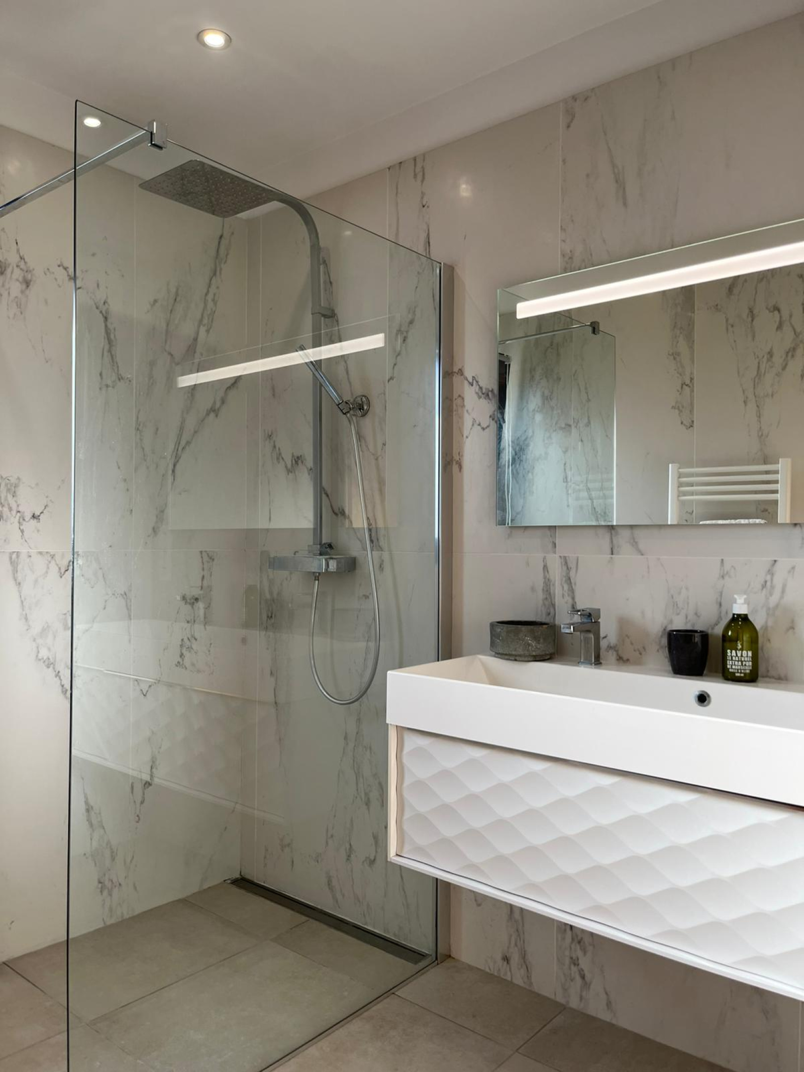 De nombreux rangements intégrés viennent faciliter le quotidien, tandis que le plancher chauffant et rafraîchissant assure un confort optimal tout au long de l’année.