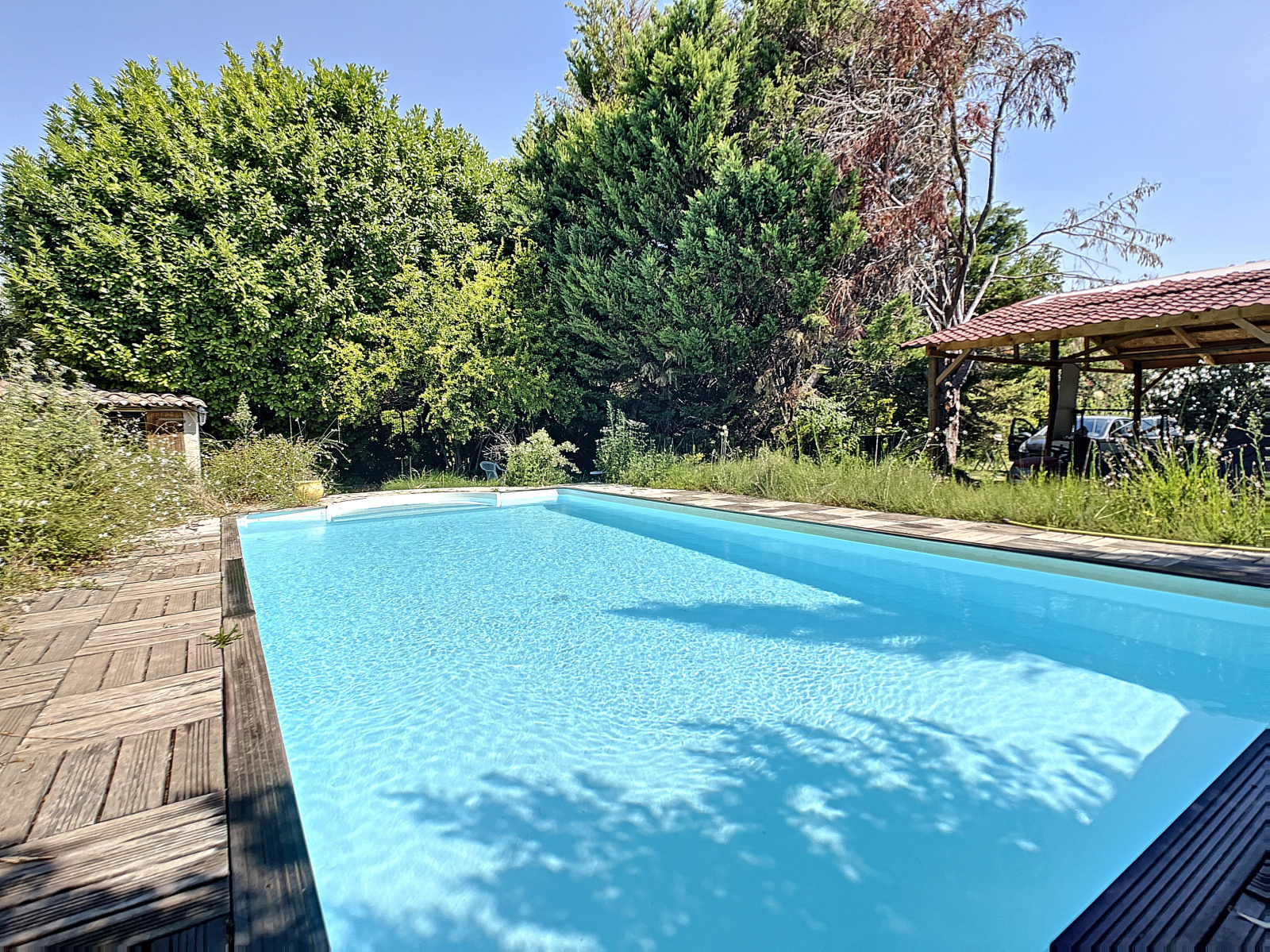 Le parc de 5432 m2 est clos et arboré, avec piscine 8x4, un grand auvent, et des vergers.