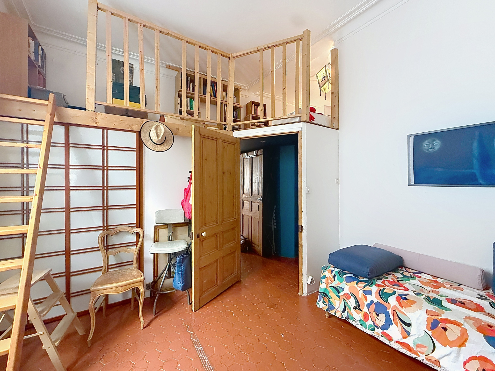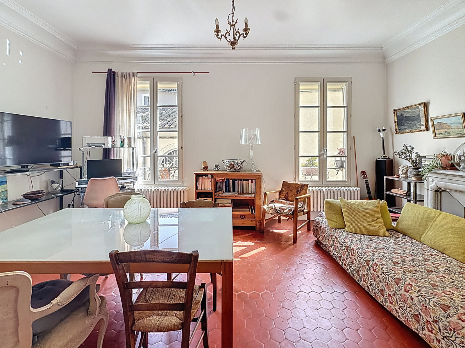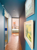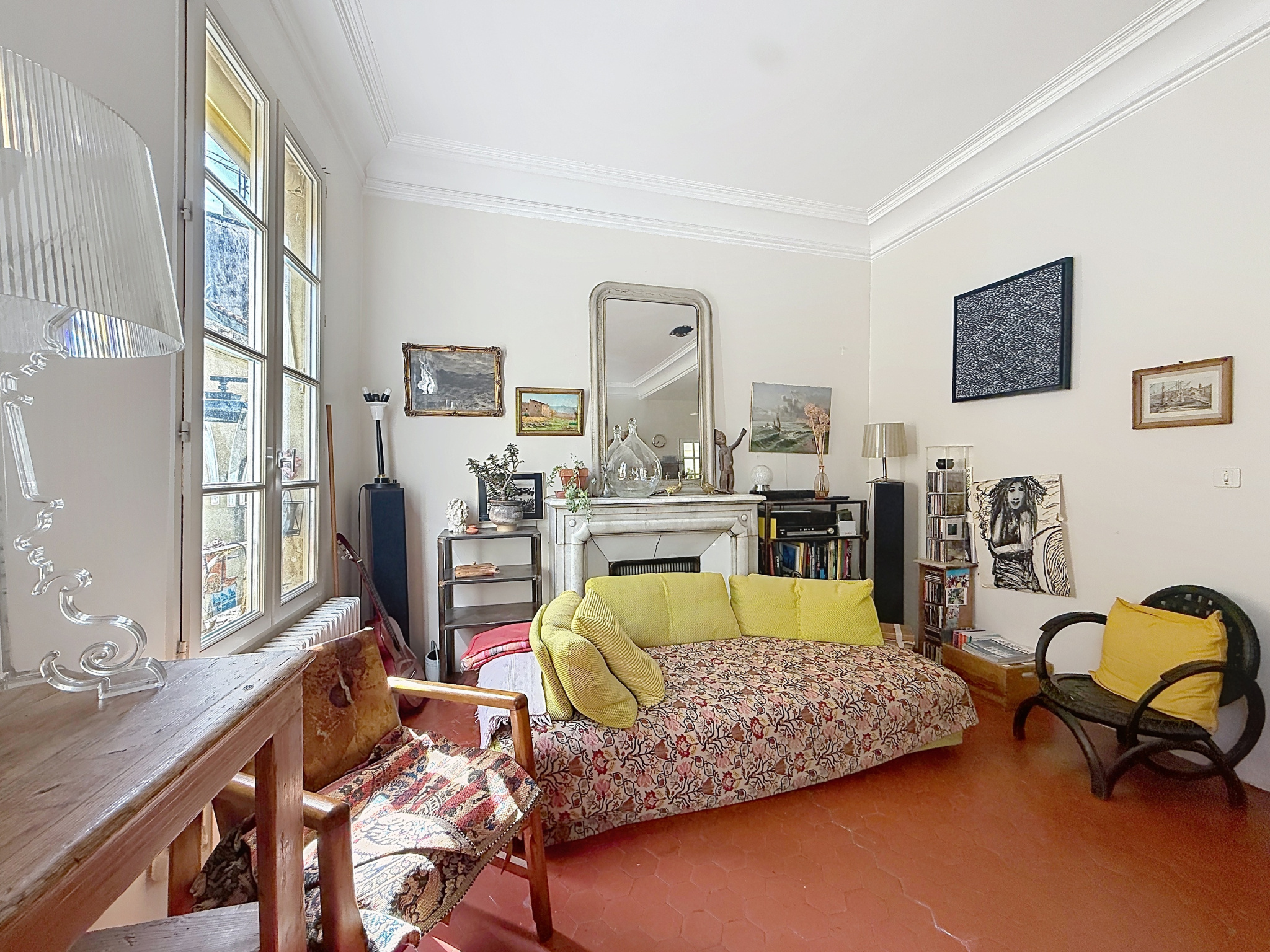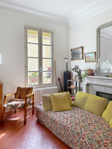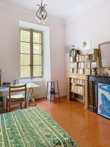 L’appartement séduit immédiatement par son atmosphère chaleureuse et son caractère ancien préservé : belle hauteur sous plafond, tomettes d’époque, cheminée…