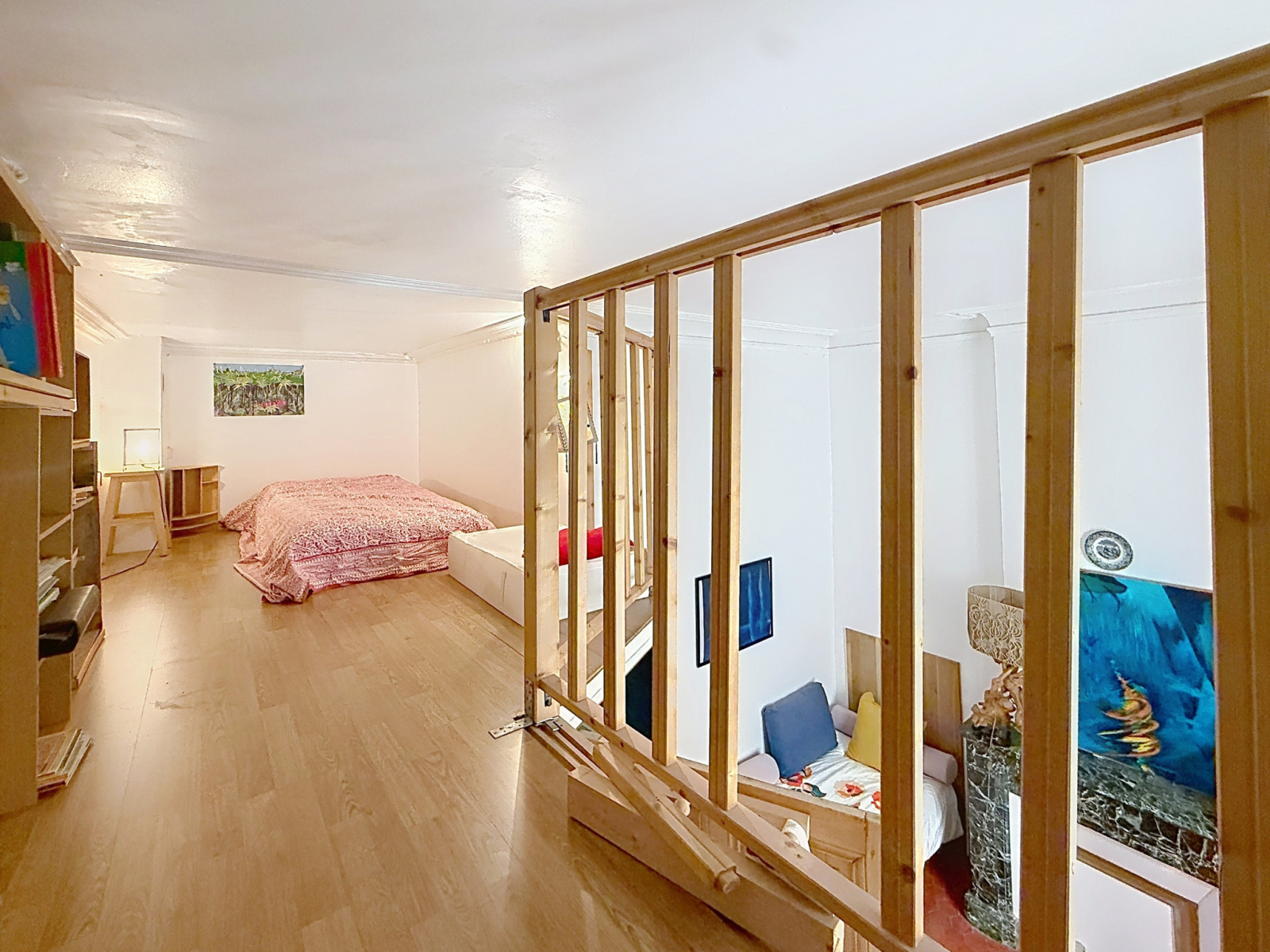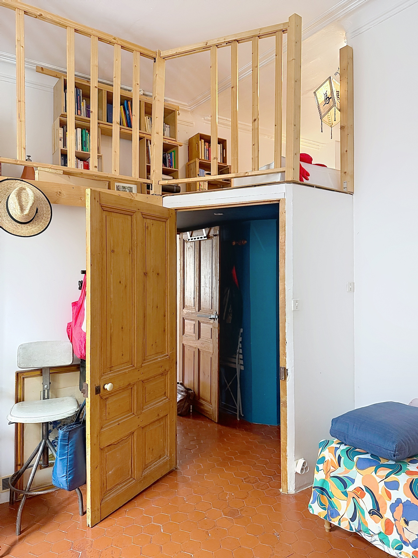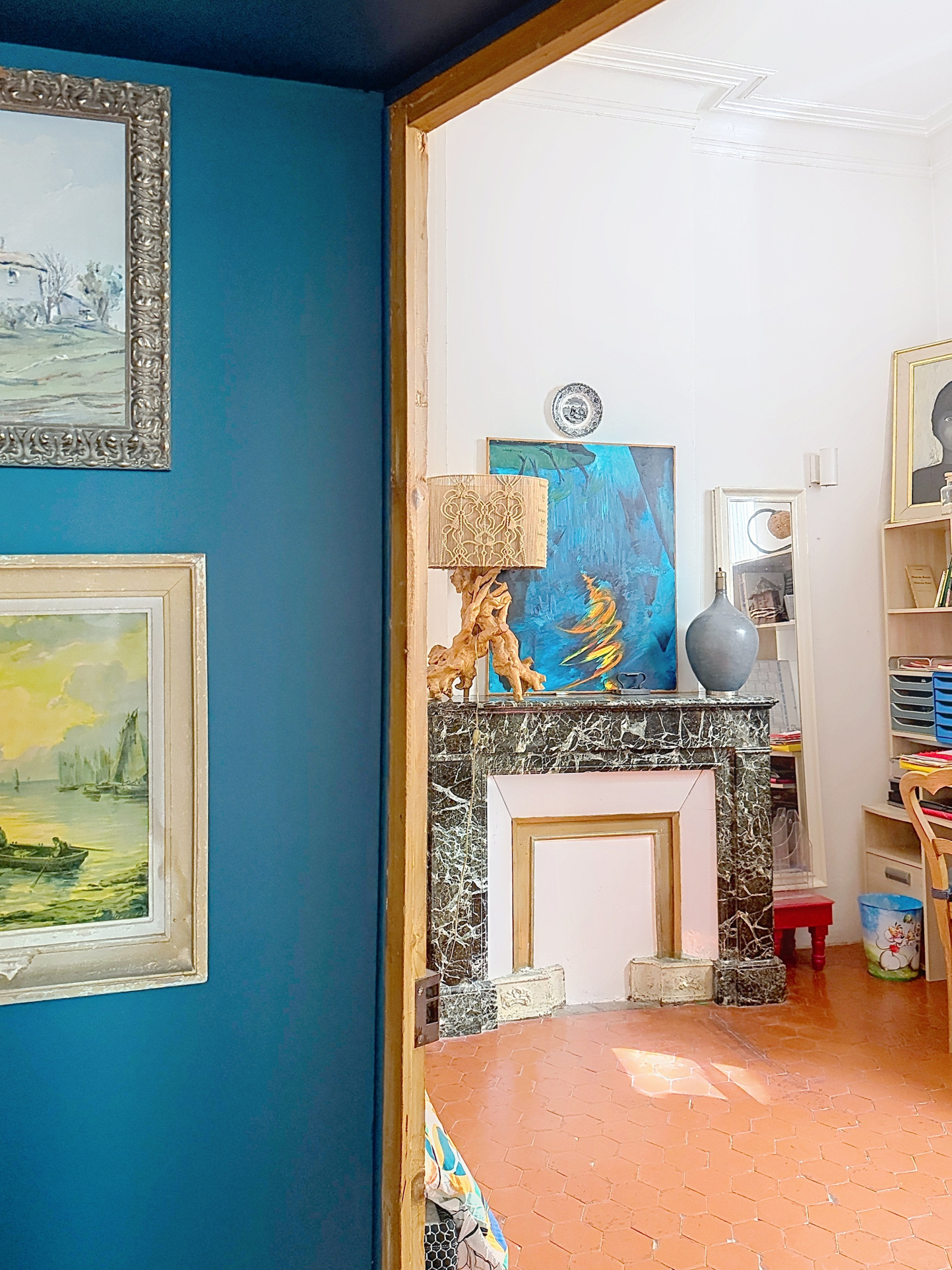 L’appartement séduit immédiatement par son atmosphère chaleureuse et son caractère ancien préservé : belle hauteur sous plafond, tomettes d’époque, cheminée…